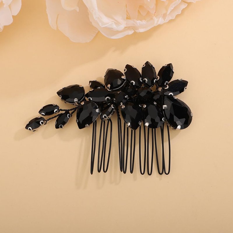 Teyglen Rhinestone Wedding Hair Comb Black Crystal Bridal Hair Piece Black Crystal Bride Wedding Hair Comb Sparkly Rhinestone Headpiece Hair Accessories for Women Girls (Black)