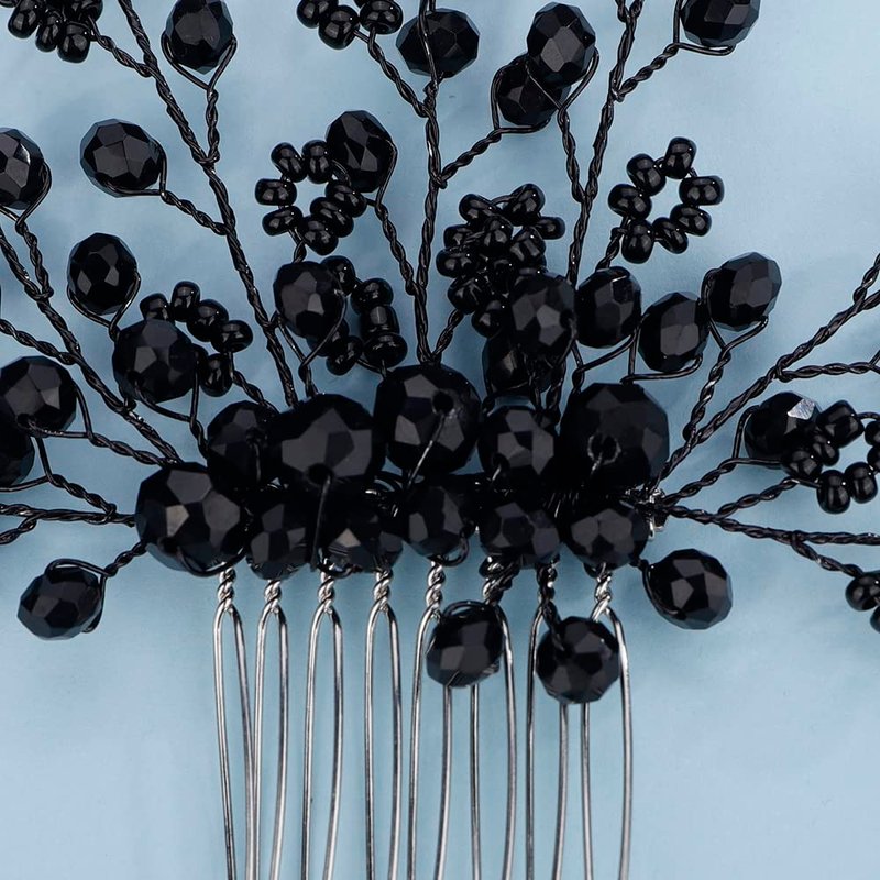 Teyglen Rhinestone Wedding Hair Comb Bridal Black Crystal Hair Side Comb Handmade Black Beads Hair Piece Vintage Headpiece Hair Accessories for Women Girls Party Prom Festival