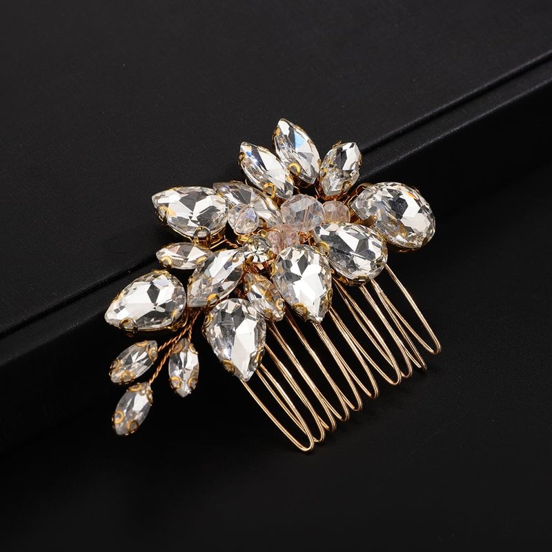 Teyglen Rhinestone Wedding Hair Comb Gold Crystal Bridal Hair Piece Crystal Bride Wedding Hair Comb Sparkly Rhinestone Headpiece Hair Accessories for Women Girls (Gold)