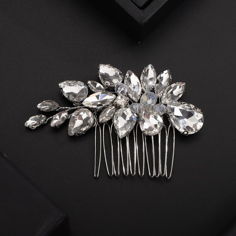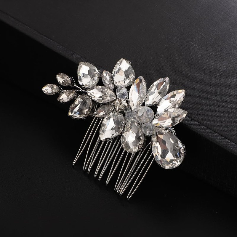 Teyglen Rhinestone Wedding Hair Comb Silver Crystal Bridal Hair Piece Crystal Bride Wedding Hair Comb Sparkly Rhinestone Headpiece Hair Accessories for Women Girls (Silver)