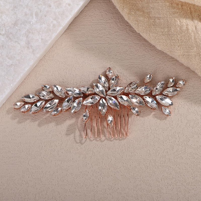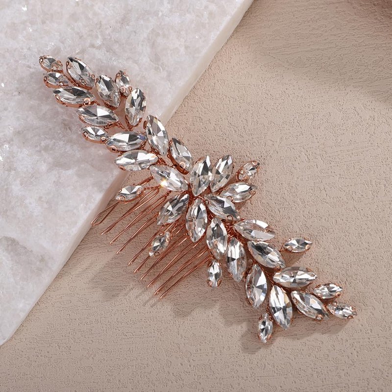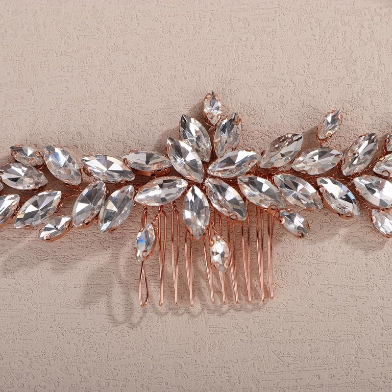 Teyglen Rose Gold Crystal Bridal Hair Comb Full Rhinestone Hair Piece Bride Wedding Hair Comb Sparkly Rhinestone Headpiece Party Prom Hair Accessories for Women (Rose gold)