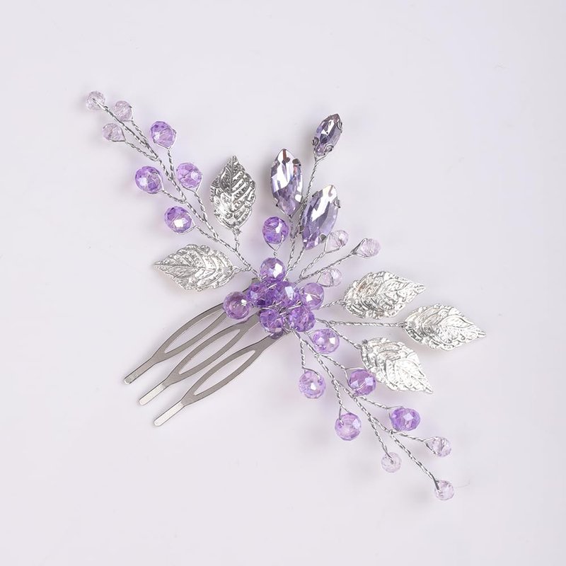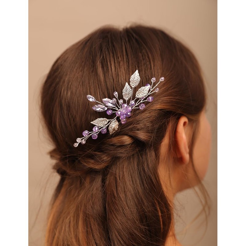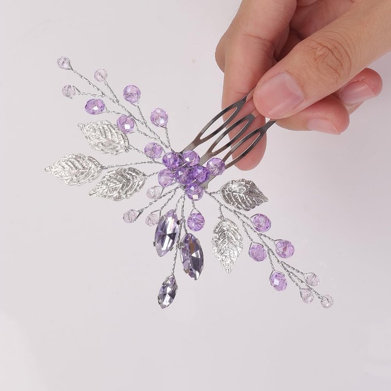 - Simple purple crystal rhinestone hair comb for women party prom wedding and evening,exquisite and unique design,will add more charm for your outfit.