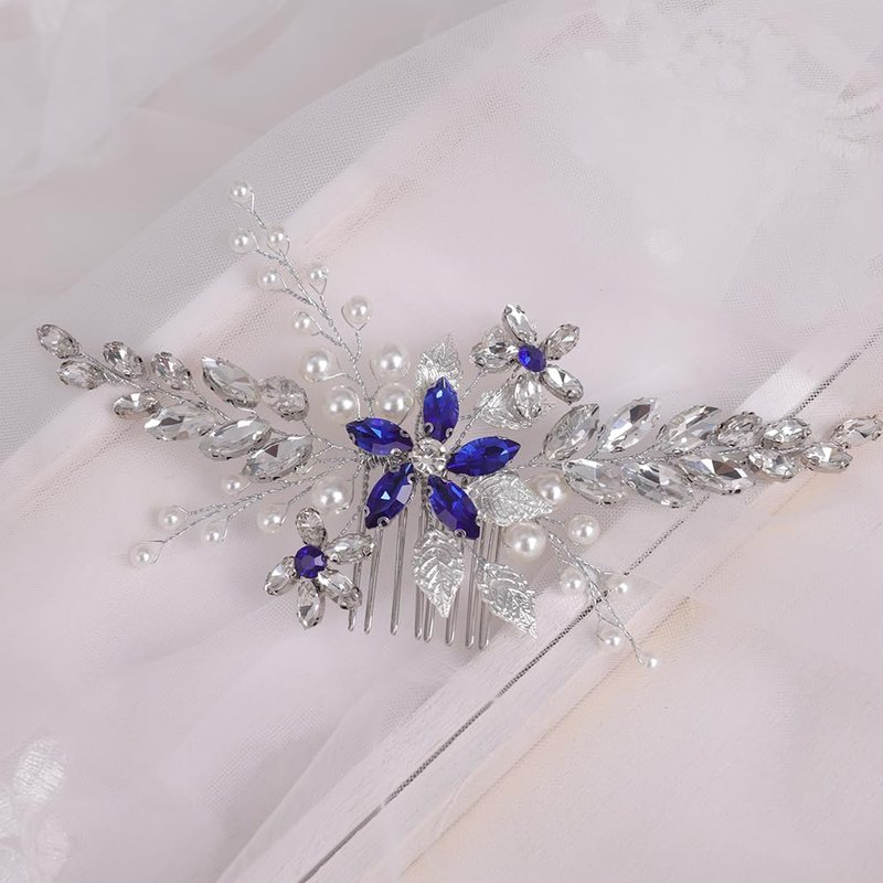 - Delicate silver leaf rhinestone crystal hair comb for women party prom wedding and evening,exquisite and unique design,will add more charm for your outfit.