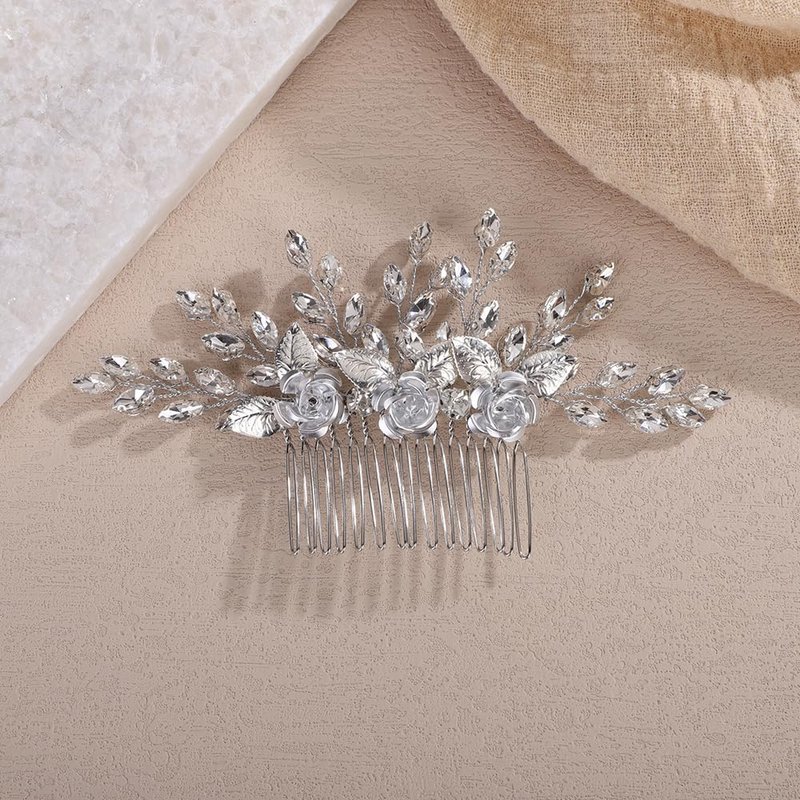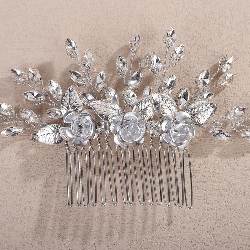 - Vintage silver rhinestone flower hair comb for women party prom wedding and evening,exquisite and unique design,will add more charm for your outfit.