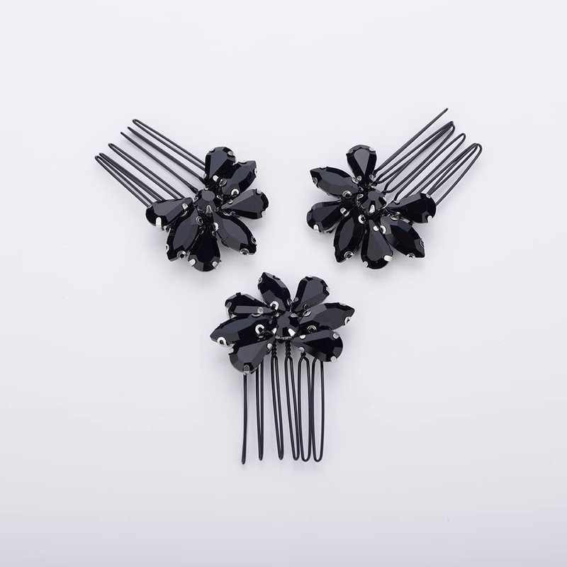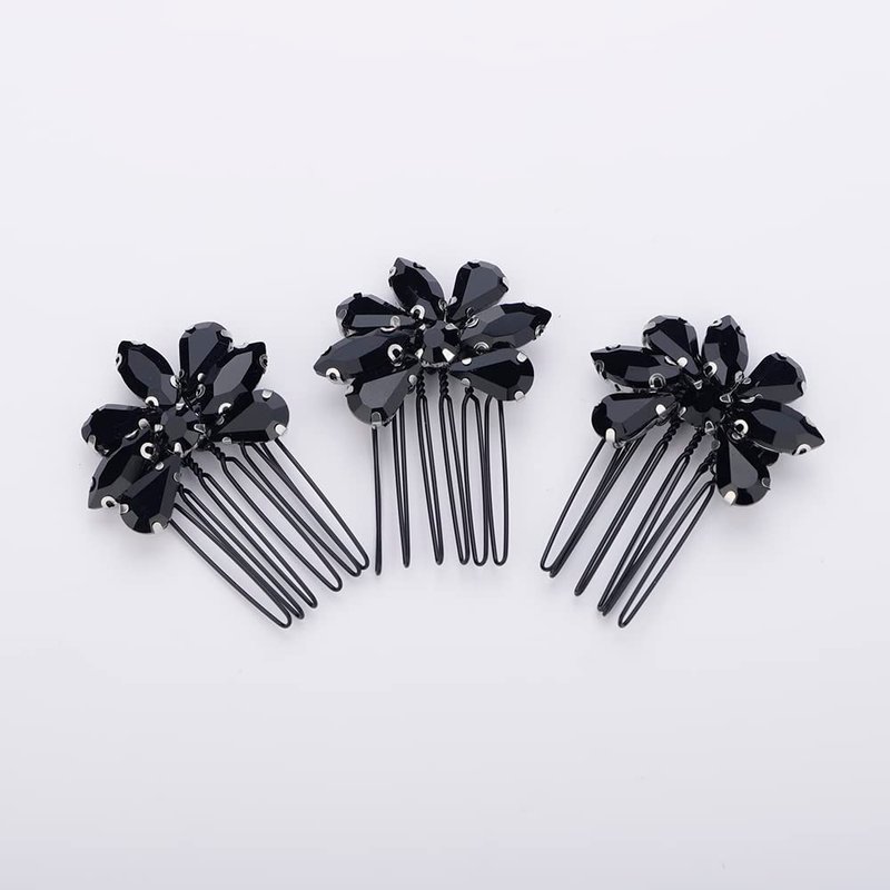 Teyglen Simple Rhinestones Crystal Bride Wedding Hair Comb Set Handmade Red Blue Black Crystal Side Hair Combs Bridal Hair Jewelry Set for Women Bride Girls (Black)