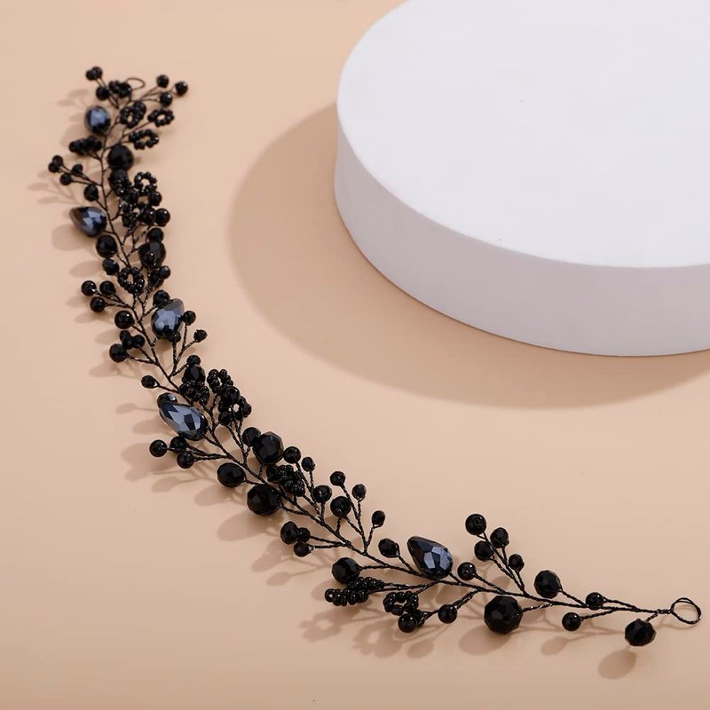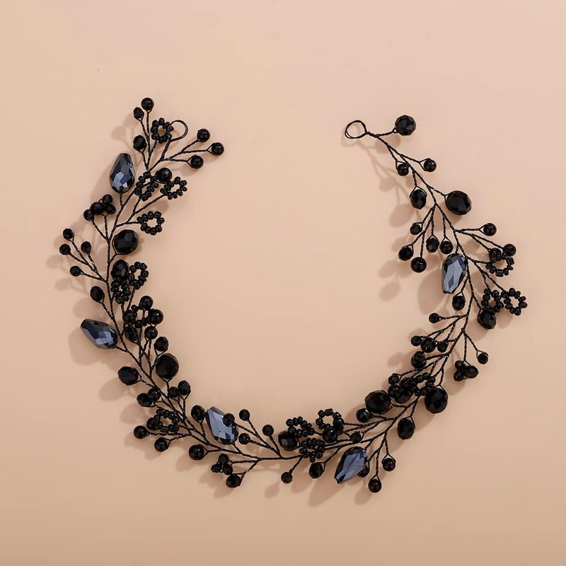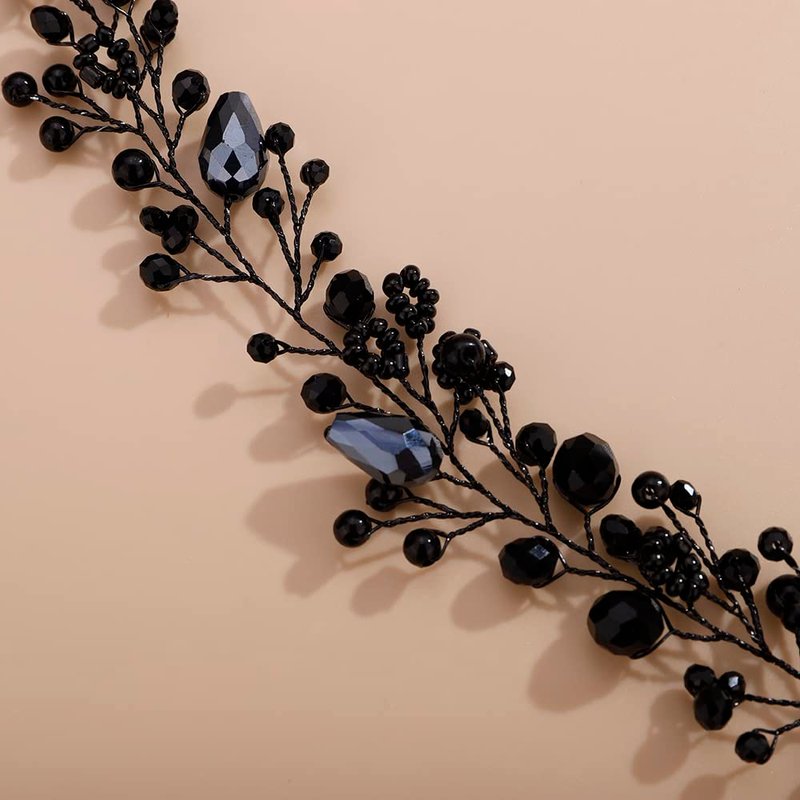 - Dainty Women Black Crystal Rhinestones Beads Headband Hair Vine