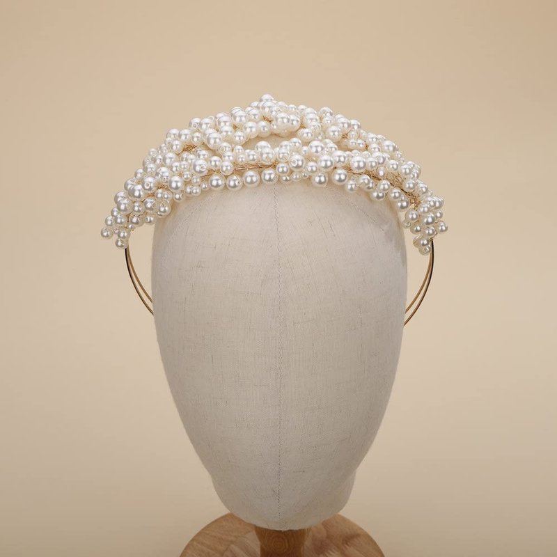 Teyglen Wedding Pearl Headband Bridal Pearl Beads Tiara Crown Floral Princess Hair Crown Hair Pieces Hair Accessories for Women Bride Prom Birthday Party (Ivory)