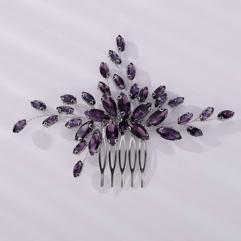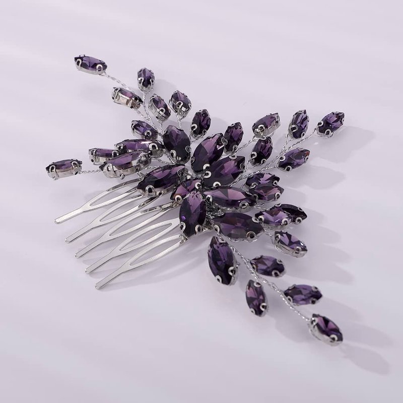 Teyglen Women Dainty Simple Full Rhinestones Red Blue Black Bride Wedding Hair Comb Luxurious Hair Accessories Shiny Rhinestones Bridal Side Hair Combs for Women Bride Girls (Purple)