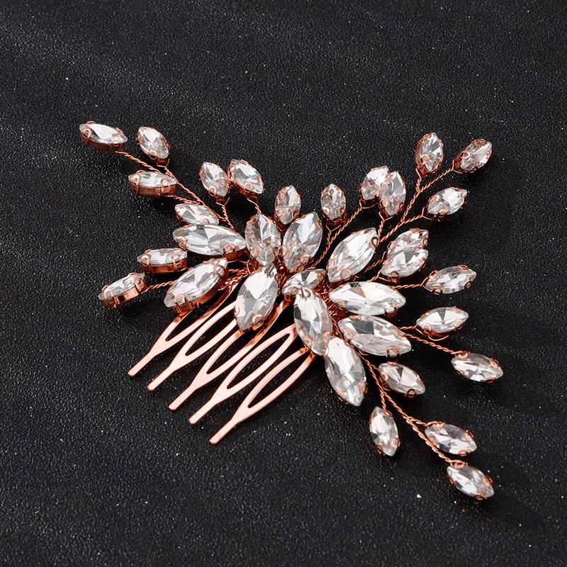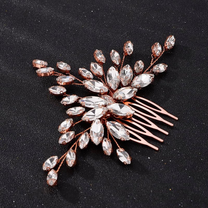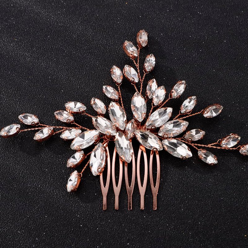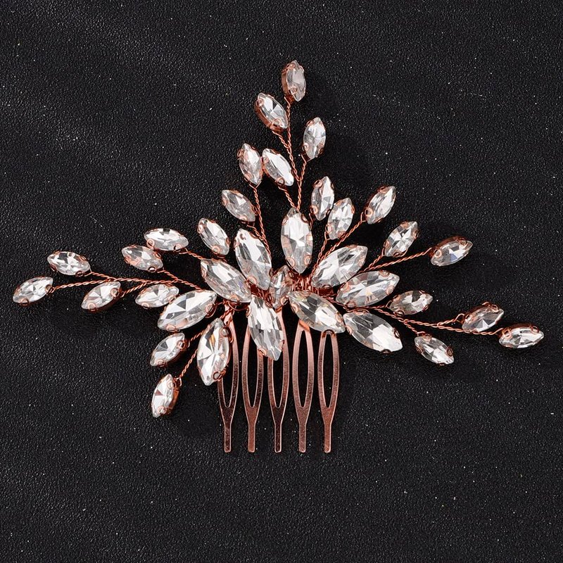 Teyglen Women Dainty Simple Full Rhinestones Rose Gold Bride Wedding Hair Comb Luxurious Hair Accessories Shiny Rhinestones Bridal Side Hair Combs for Women Bride Girls (Rose Gold)