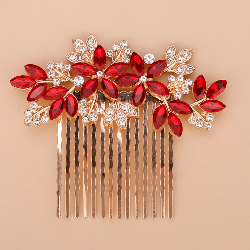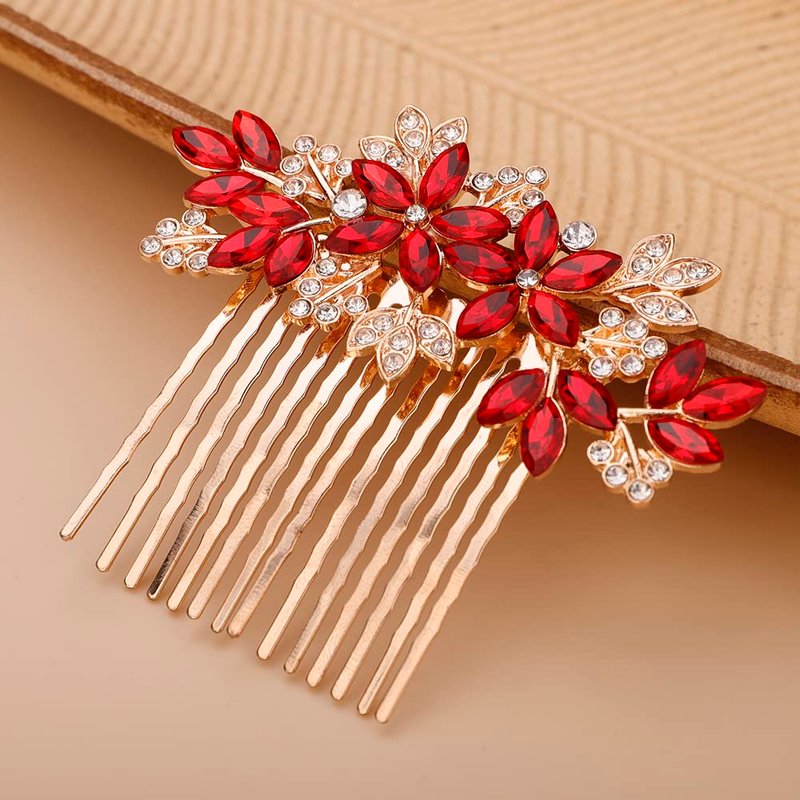 Teyglen Women's Dainty Silver Gold Rhinestones Hair Comb - Luxurious Hair Accessories with Shiny Red Blue Rhinestones, Bridal Side Hair Combs for Women Bride Girls (Gold, Red)