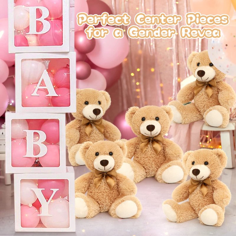 Tezituor Teddy Bear Stuffed Animal Bulk 5 Packs, 14in Small Bulk Teddy Bear Plush, Teddy Bears Centerpiece for Baby Shower, Stuffed Bears Gift for Kids Girlfriend on Christmas, Valentines, Light Brown
