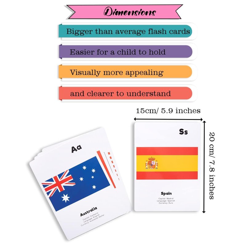 - COUNTRY FLASH ALPHABET CARDS: The ABC flash cards are specifically designed to facilitate alphabet learning for children. Each flash card represents a different alphabet letter, guiding children through the entire A-to-Z sequence.