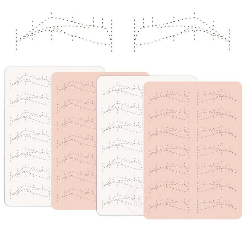 - Nano Brow Silicone Practice Skin: Empty brow shapes with thin tracer dots. Can be use to practice any brow technique.