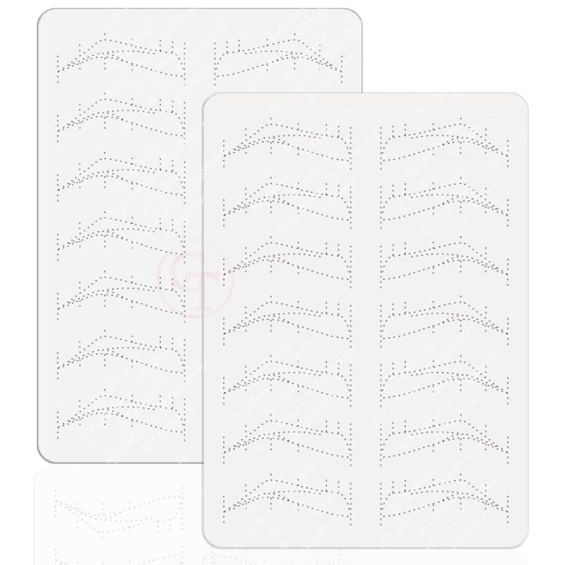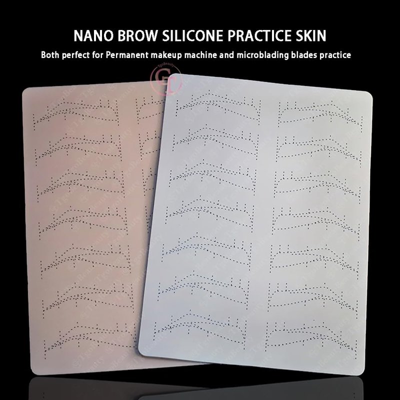 - Nano Brow Silicone Practice Skin: Empty brow shapes with thin tracer dots. Can be use to practice any brow technique.