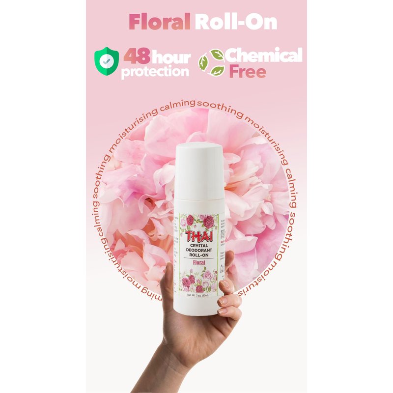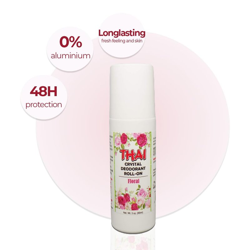 Thai 100% Natural Crystal Scented Deodorant Liquid Roll-on, No Aluminum Metals, Parabens, Propyls, or Sulfates, Cruelty Free and Environmentally Safe, Floral, 3 Fl Ounce