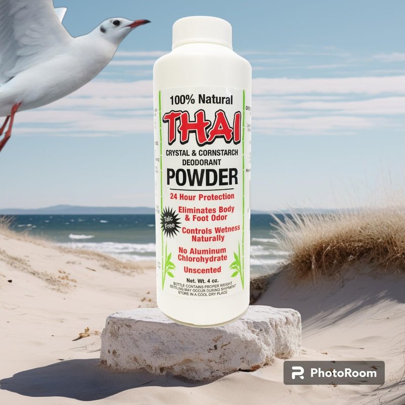 Thai Crystal Deodorant Natural Crystal & Cornstarch Deodorant Foot Body Powder, Unscented, 4 Ounce