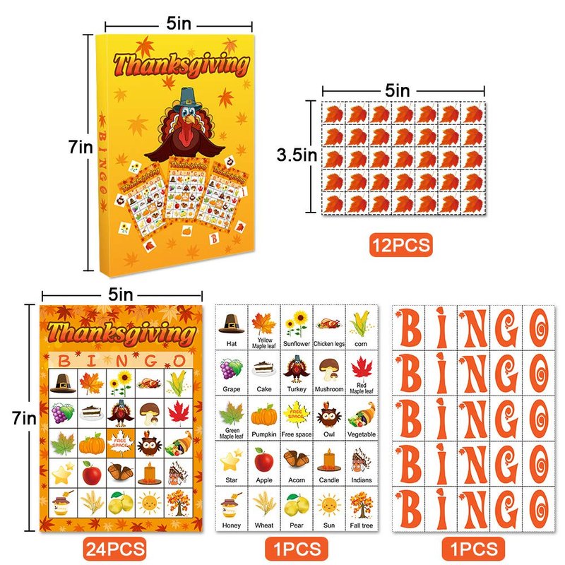Thanksgiving Day Bingo Game Party Supplies Gift for Kids Adult 24 Player