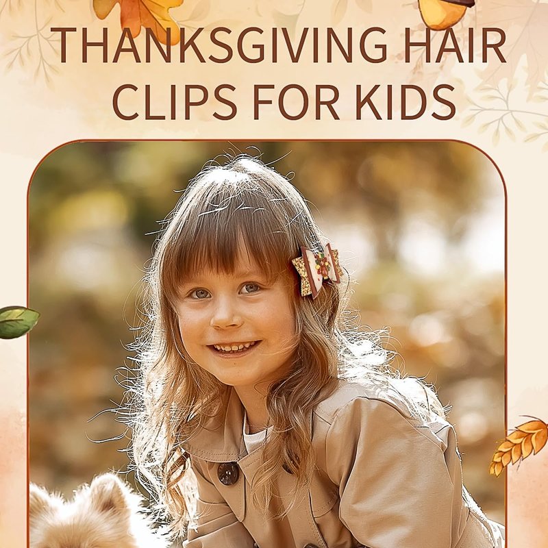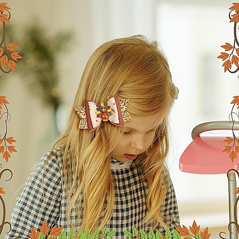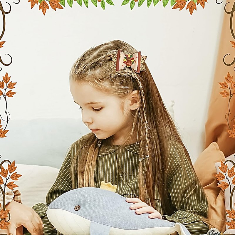 - [ Easy to Match ] The bow clip size is 3.16 x 1.92 inches, which fits for most little girls, toddlers, teens, children, kids, etc. Thanksgiving hair clips can be matched with various fall hairstyles and costumes, which bring you a strong festival atmosphere and let you enjoy it.