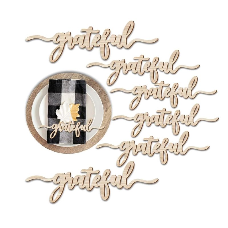 - π Use these to decorate your fall dining table settings, pick from our selection of βThankfulβ βGratefulβ and βBlessedβ all beautiful additions to any table setting. Wood grain is also perfect for rustic, modern, farmhouse table settings.