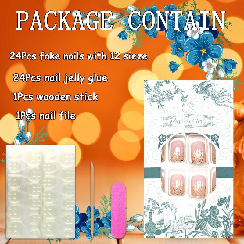 - Great Value: The package contains 24 pieces of Thanksgiving square fake nails of different sizes, 1 mini nail file, 1 small wooden stick, 1 piece of nail glue sticker, giving you plenty of nails to use for multiple occasions.