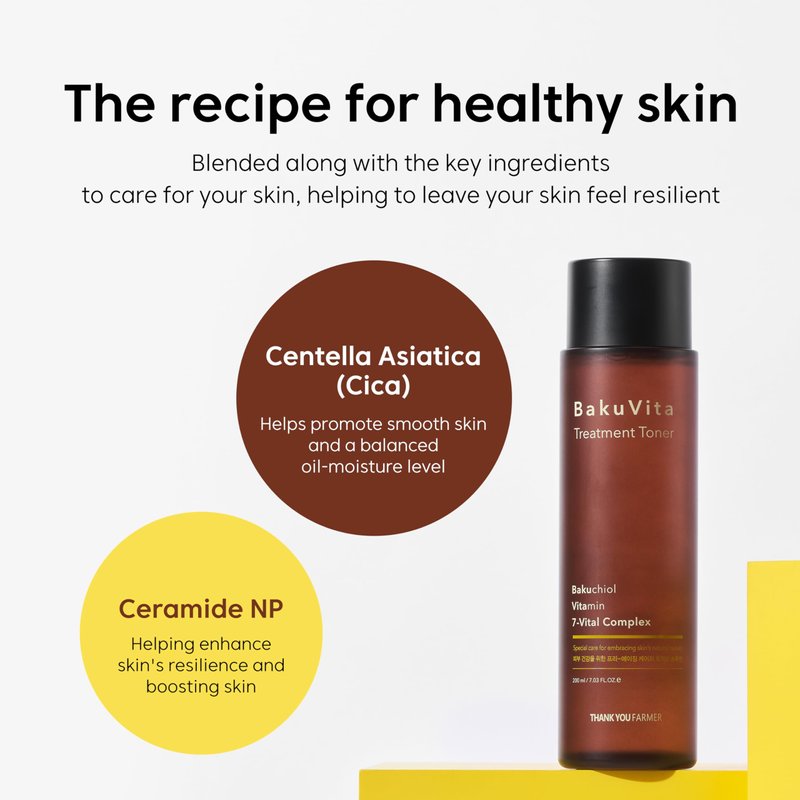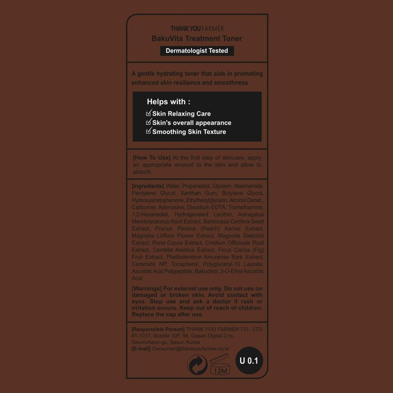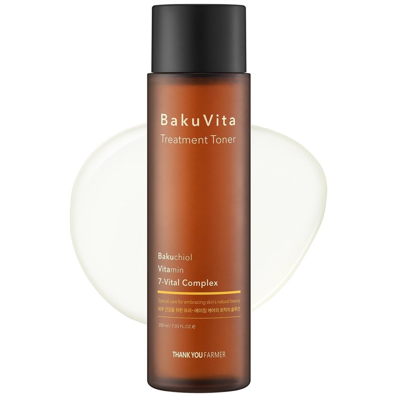 - [BakuVita = Bakuchiol + Vitamin] THANK YOU FARMER's exclusive recipe that contains Botanical Retinol, BAKUCHIOL, and VITAMIN C & E.