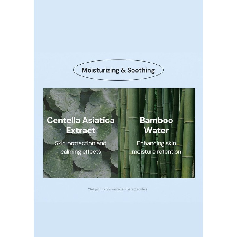 - Natural ingredients for hydration and soothing. Contains Aloe extract, Centella Asiatica that soothes skin