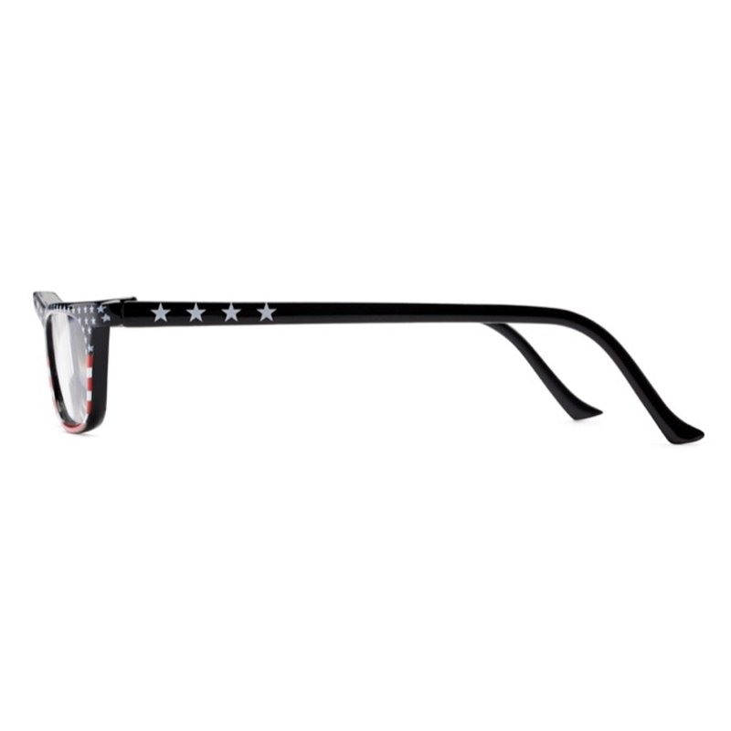 - THE ALL AMERICAN Reading Glasses are a rectangular style full frame reader. These patriotic cheaters have a beautiful hand painted American flag design on the front screaming "USA". The solid black metal temples make this frame lightweight, sturdy and comfortable. Designer style reader eyeglasses at an inexpensive price. Available in 3 different flag designs.