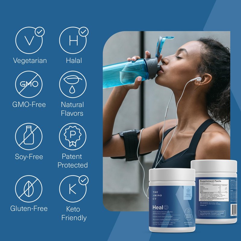 - Complete Wellness Support: Amino Co Heal post-workout recovery powder contains pure essential amino acids, facilitating muscle recovery, preventing breakdown, and promoting balanced wellness. Nourish your body for comprehensive well-being.