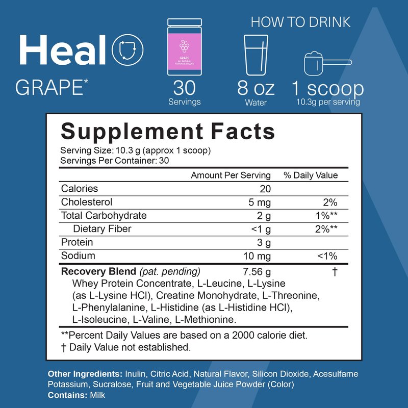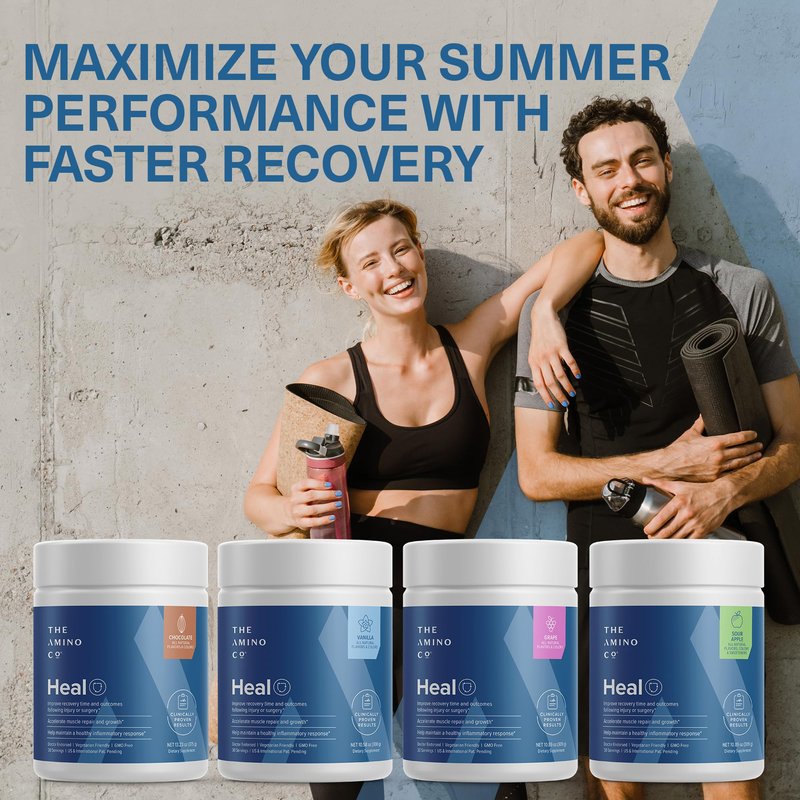 - Optimize Your Fitness: Amino Co Heal powder supports muscle development and boosts endurance. Post workout blends, with grape flavor and added sweetener, offer a wholesome approach to optimize your fitness journey.