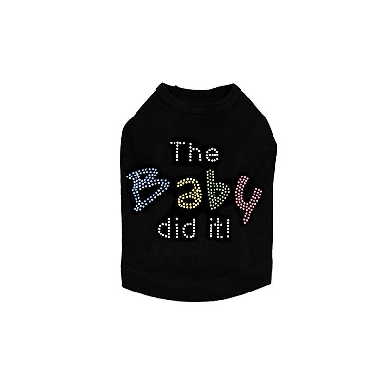 The Baby Did It - Dog Tank. 5" X 3.5" design with clear, blue, yellow, green & pink rhinestones.