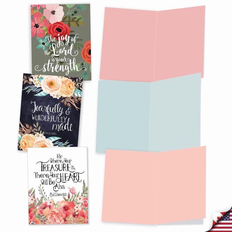 The Best Card Company - 10 Assorted Biblical Quotes Blank Encouragement Notecards Box Set 4 x 5.12 Inch w/Envelopes Religious Christian Verse (10 Designs, 1 Each) - Praise Papers M6635OCB