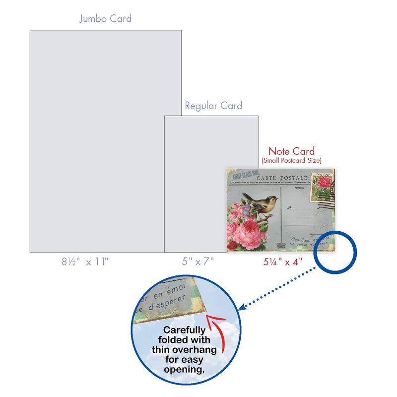 THANK YOU CARDS WITH FRENCH POSTCARD THEME The tasteful designs of these unique cards will make your appreciation stand out to family members and friends. Each card is designed to look like a vintage postcard from Paris, with French images and writing, famous landmarks, and old-fashioned stamps. Written on our top-quality, US-made note cards, your message of thanks is sure to be cherished. PREMIUM QUALITY AND DESIGN These small cards were created as an assorted stationery This is part of a larger collection that spans a broad range of motifs, from traditional themes to contemporary graphics to vintage art – there's something for everyone! Our cards are printed on-demand on thick, bright, premium recycled paper. Many of the designs are available in both greeted and blank versions. Known for our funny cards and what has been described at times as snarky humor. We proudly print all our products in North America - USA and Canada (of all places)! Every card is printed-to-order and on demand, which eliminates waste and obsolete inventory. No matter what the product is, we strive for perfection - every card, every order, every time.