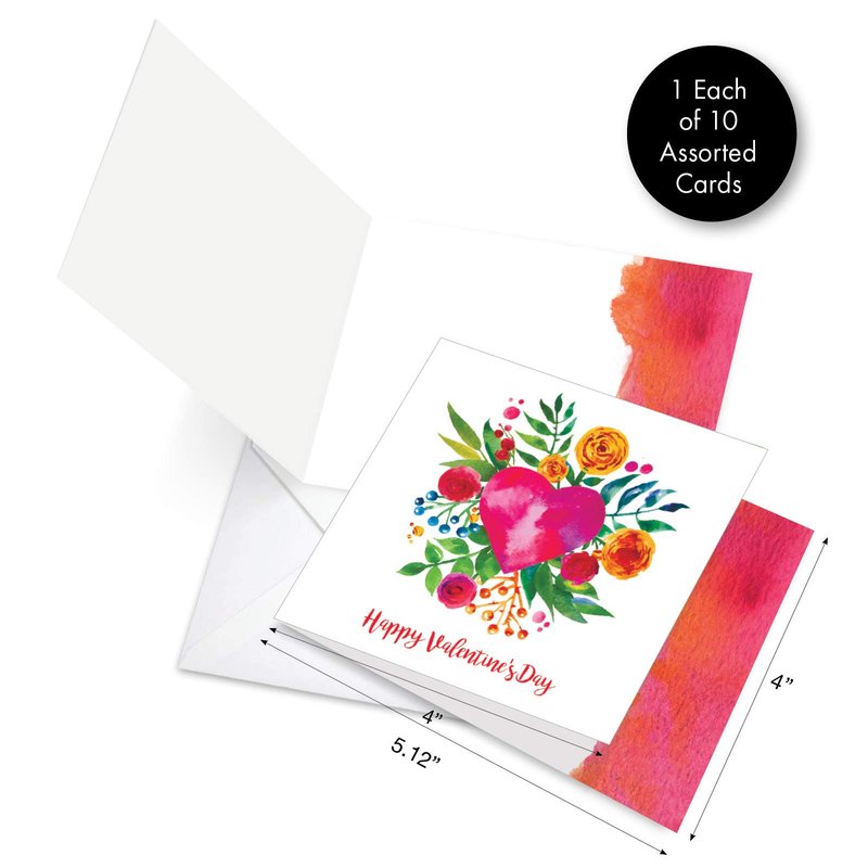 - SIZE - Bulk gift box set of 10 beautiful assorted Valentine's Day note cards & envelopes and measure 4" x 5 ", which is smaller than your regular standard card.