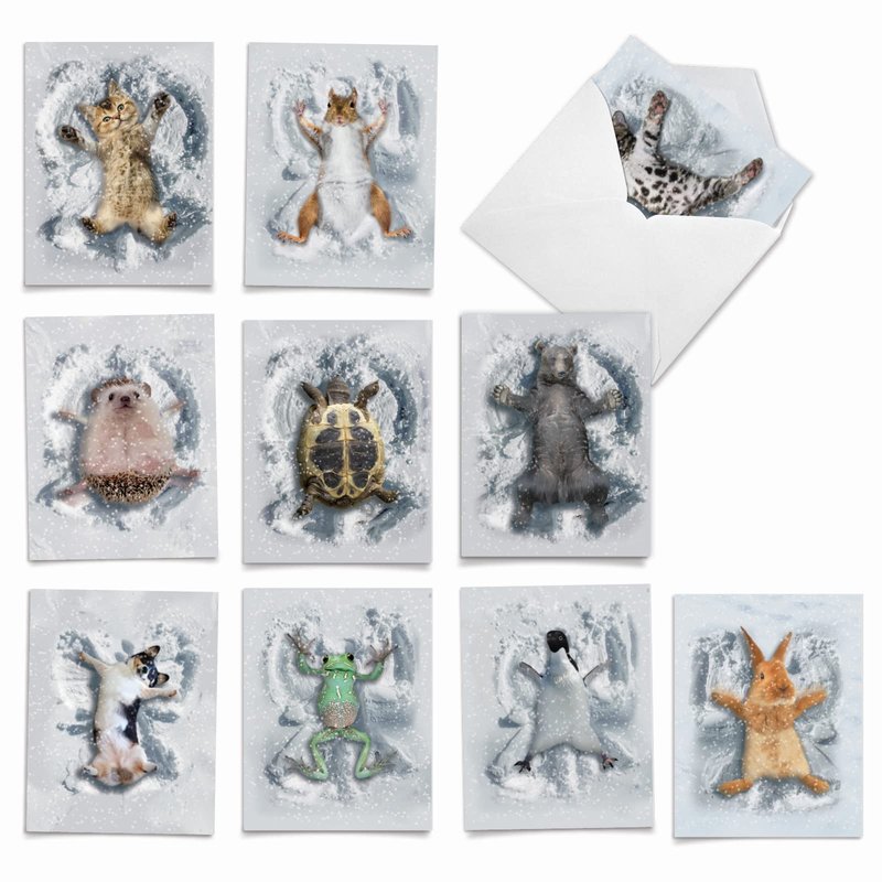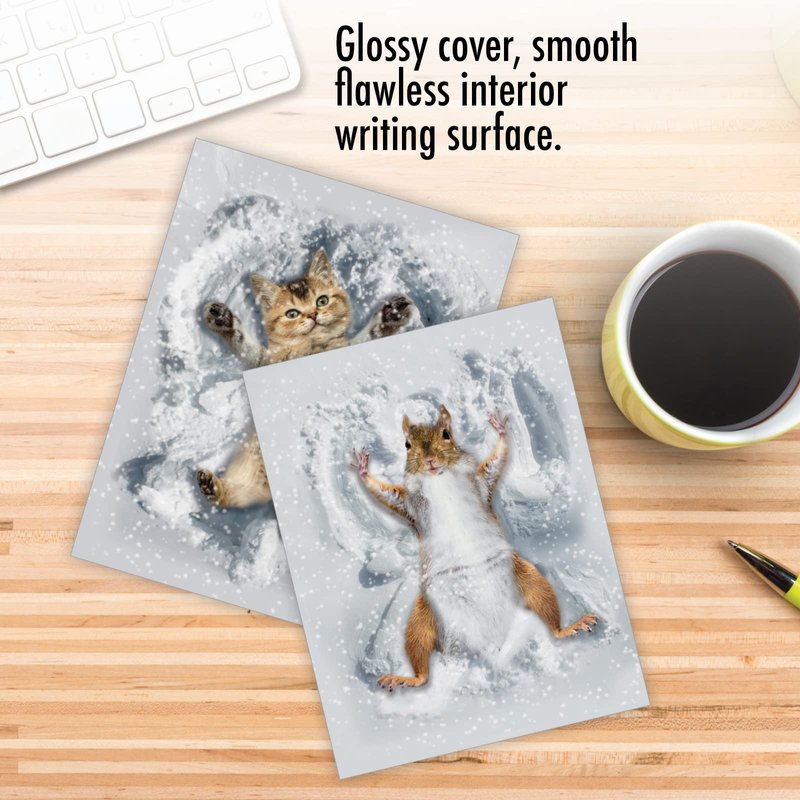 - INSIDE GREETING: The inside is ungreeted, making this perfect for your customized notes for all occasions! COVER - [assorted critters making snow angels]