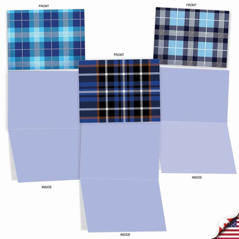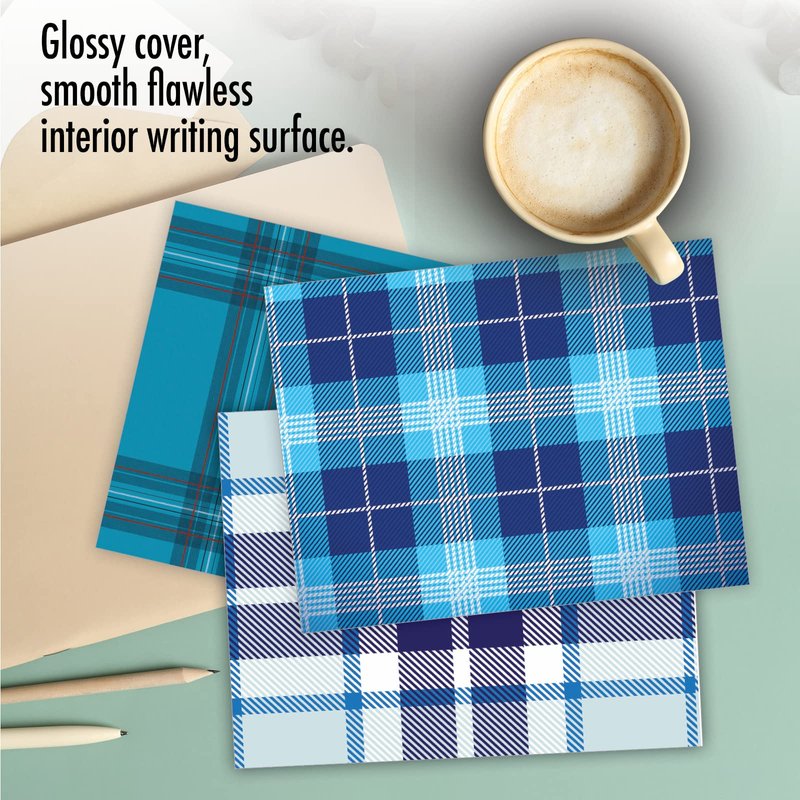 - INSIDE GREETING: The inside is ungreeted, making this perfect for your customized thinking of you, miss you, just because notes, for any time and for all occasions! COVER - Featuring Blue Plaid Patterns