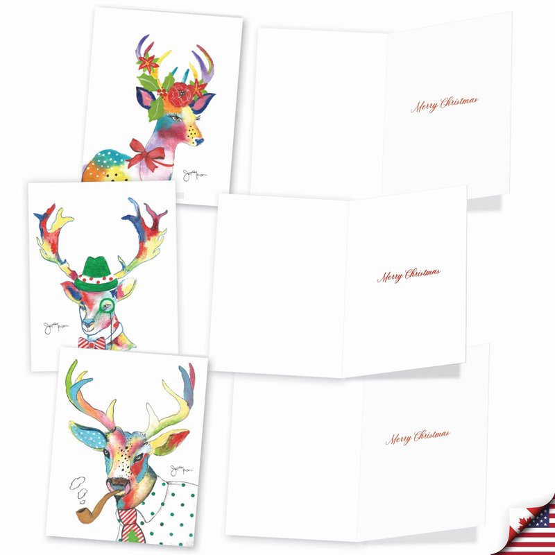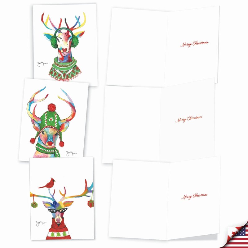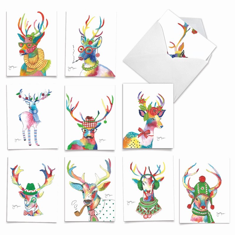 The Best Card Company Variety Pack of 10 Christmas Greeting Cards with Envelopes, Humor Holiday Assortment for Men and Women (10 Designs, 1 Each) - Fancy Reindeer AM6751XSG-B1x10