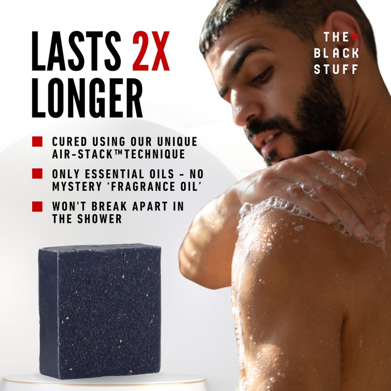 The Black Stuff Pine Tar Soap - Mens Bar Soap Made with Pine Tar, Organic Ingredients and Essential Oils - Handmade Cold Process Body Soap for Men - Moisturizing and Cleansing organic Bath Soaps