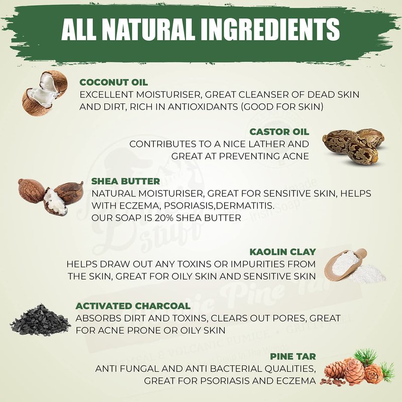 Our men's soap bars are made using the traditional cold process method, ensuring that the beneficial properties of Shea Butter, Spirulina, and Carrageen Irish Seaweed are preserved. This process not only enhances the moisturizing qualities of our soaps but also creates a rich, luxurious lather that leaves your skin feeling soft and smooth. Each bar soap for men is infused with natural exfoliants like Volcanic Pumice and Kaolin Clay, which work together to remove dead skin cells and revitalize your skin, making it an essential part of your mens self-care routine.