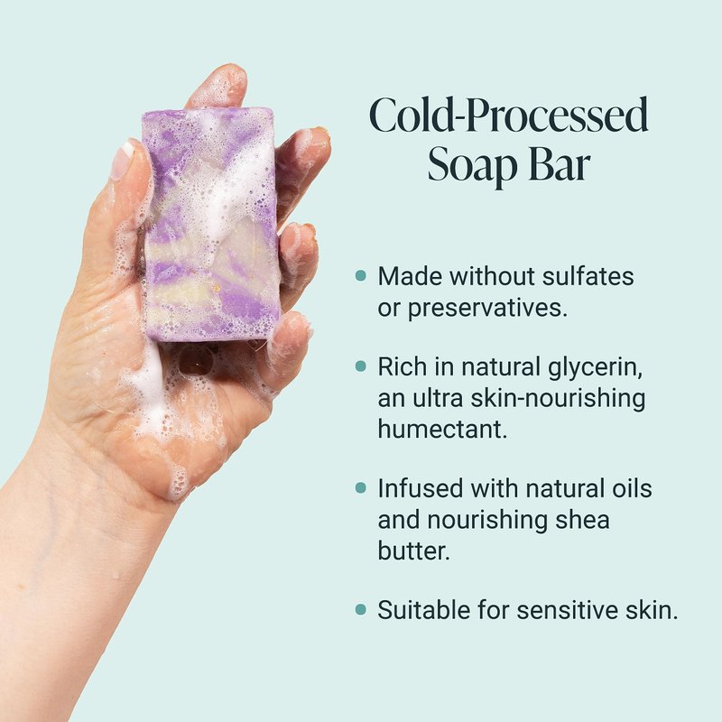 - THE COLD PROCESS DIFFERENCE: Traditional soap is made using the cold-process method, where fats and oils are used to create natural glycerin resulting in true soap (most commercial soaps on the shelves use synthetic ingredients that remove glycerin). The cold process allows all the natural goodness to stay intact and enhance our bars with their skin nourishing ingredients (Natural Glycerin, Raw Shea Butter, Natural Oils, Kaolin Clay)