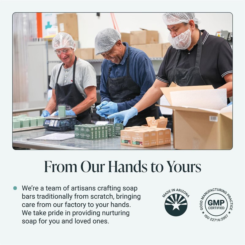 - HANDMADE WITH AMERICAN JOBS: All our products are handmade in Arizona, USA. We are dedicated to performing good manufacturing practices (ISO 22716:2007), supporting our local communities, and providing our employees with great workplace culture.