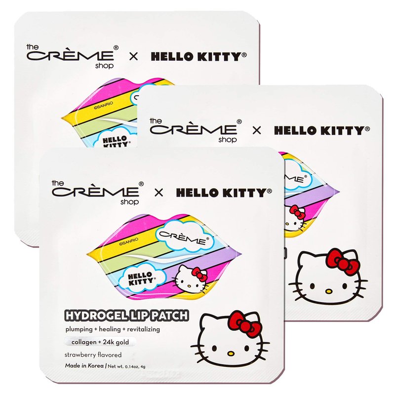 The Crème Shop x Hello Kitty Hydrogel Lip Patch | Strawberry Flavored Collagen & 24k Gold Hydrogel Lip Patch The Crème Shop and Hello Kitty team up to help nourish, smooth, and plump your lips. Collagen and 24k gold help moisturize while delivering intense hydration to help smooth the appearance of fine lines and wrinkles.