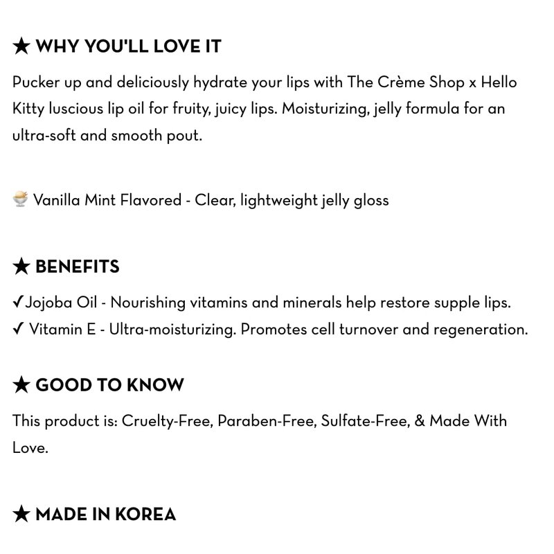 The Creme Shop x Hello Kitty Kawaii Kiss Moisturizing Lip Oil - Vanilla Mint Flavored