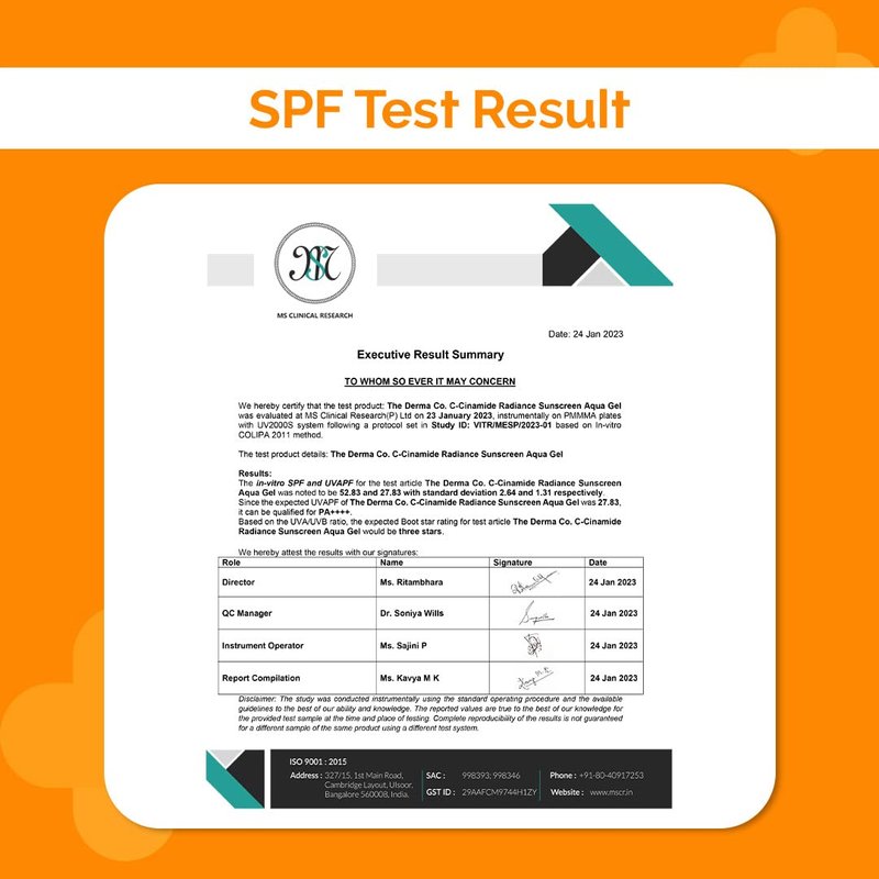 Good skin comes to those who wear sunscreen daily, and glowing skin comes to those who wear our C-Cinamide Radiance Sunscreen Aqua Gel with the power of 2 actives - Vitamin C & Niacinamide. Power-packed with SPF 50 & PA++++, our C-Cinamide Radiance Sunscreen Aqua Gel protects your skin from harmful UVA & UVB rays and makes your skin glowing and even-toned. The lightweight & quick-absorbing formula makes it a part of your skin without leaving any white cast. Wait, there’s more! The oil-free formula makes it amazing for even those with acne-prone skin.
