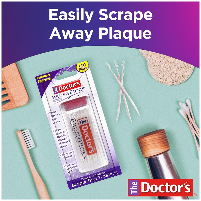 - The Doctor’s BrushPicks, Interdental Brushes and Dental Pick 2-in-1, Plaque Remover for Teeth, 120 Toothpicks, 1 Pack
