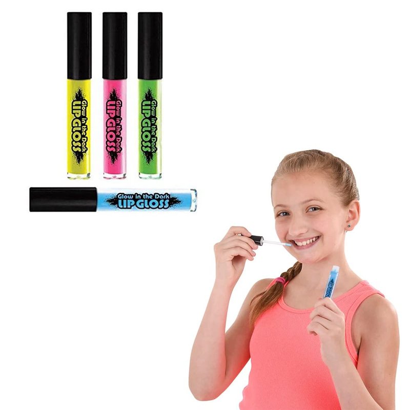 The Dreidel Company Glow in The Dark Lip Gloss, 4 Assorted Color Sticks, 4.25" Inches