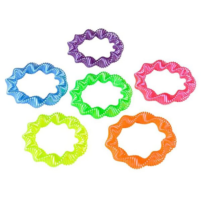 - SIZE: The Plastic Bracelet Sensory Toy is 6.50" Inches and comes in vibrant Neon Colors. COLORS: Red, Orange, Yellow, Green, Blue, Purple..