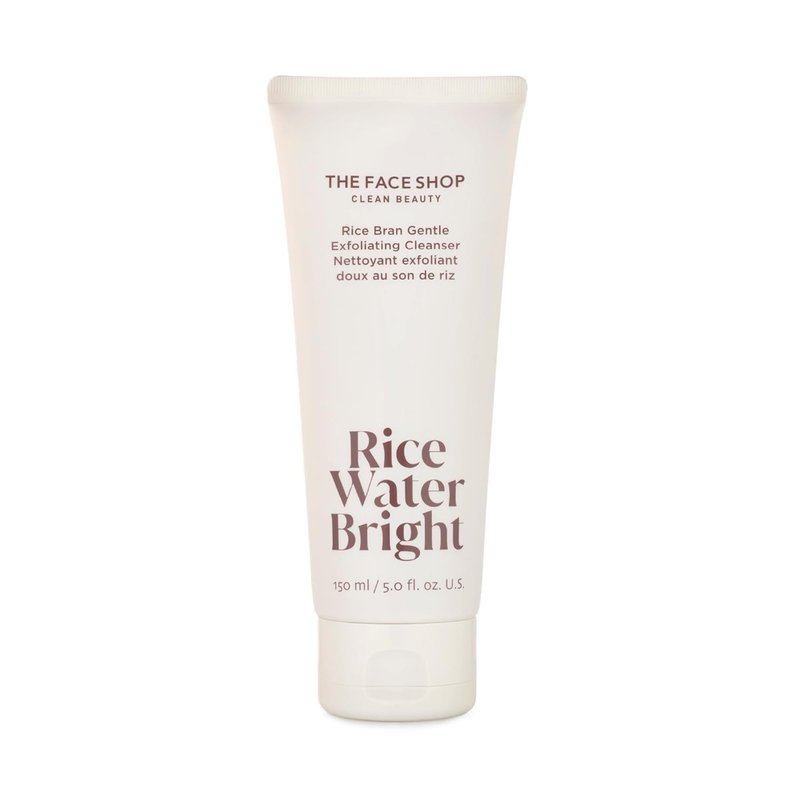 The Face Shop Rice Water Bright Rice Bran Gentle Exfoliating Cleanser - Hydrating, Moisturizing & Brightening Face Cleanser - Vegan Exfoliating Face Wash Face Scrub - Korean Skin Care Face Exfoliator
