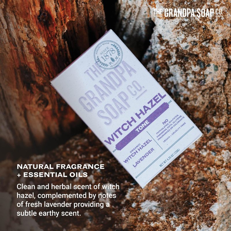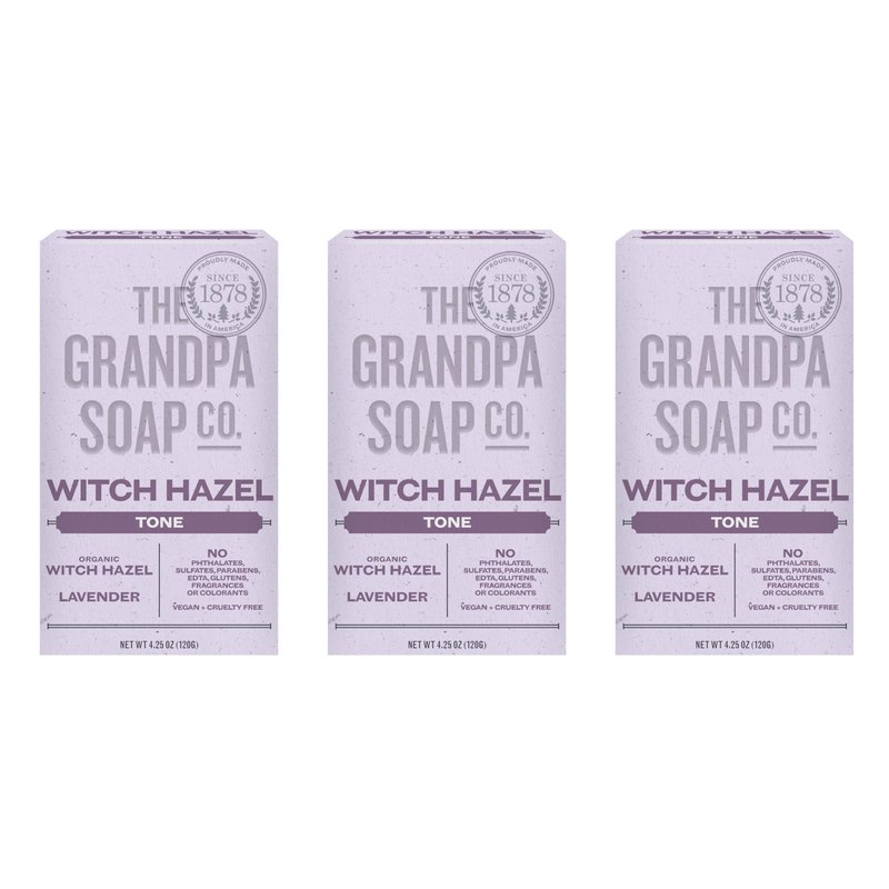 The Grandpa Soap Company Witch Hazel Bar Soap - Tones and Rejuvenates Skin, With Witch Hazel and Lavender, Provides a Relaxing Effect, Vegan, For Face and Body, 4.25 Oz, 3 Pack