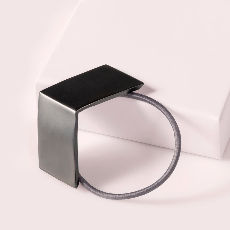 - Chic ponytail holder with a gunmetal black chevron detail.