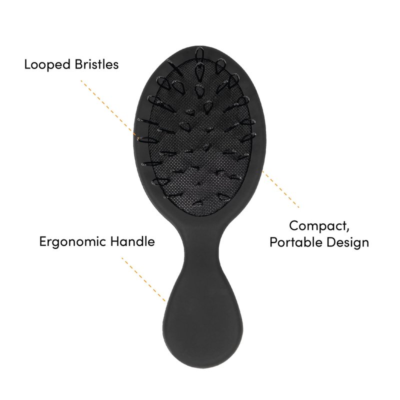 The Hair Shop Mini Black Loop Brush - Salon Professional Grade with Matted Black & Ergonomic Travel Size Design- Small & Safe Detangler Tool for 100% Remy Human and Synthetic Hair Extensions and Wigs